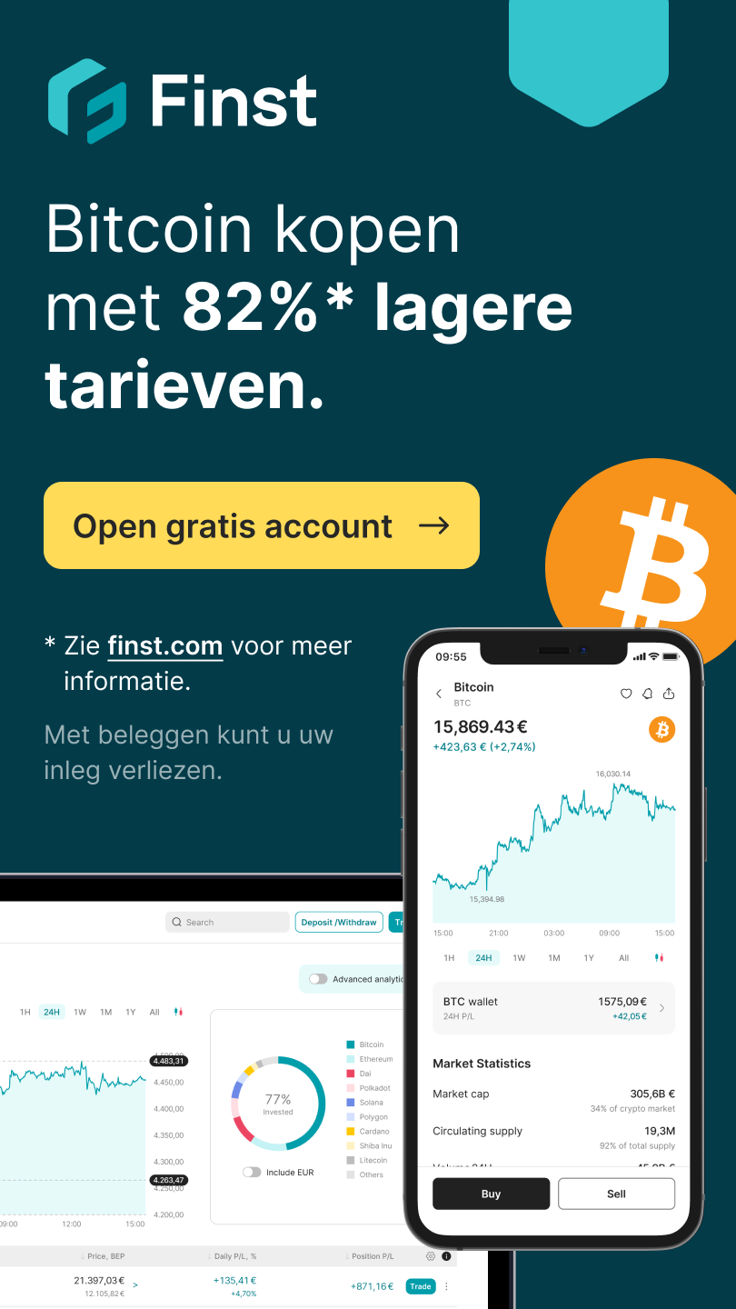 Finst is een jonge cryptobroker gevestigd in Amsterdam. Finst is opgericht door voormalig medewerkers van DEGIRO en je kunt er crypto kopen tegen de laagste transactiekosten van Europa. Het doel van Finst is dat retailbeleggers ook gebruik kunnen maken van dezelfde tools en voorwaarden als professionele cryptohandelaren: zeer lage transactiekosten, een geavanceerd platform en een hoge betrouwbaarheid.